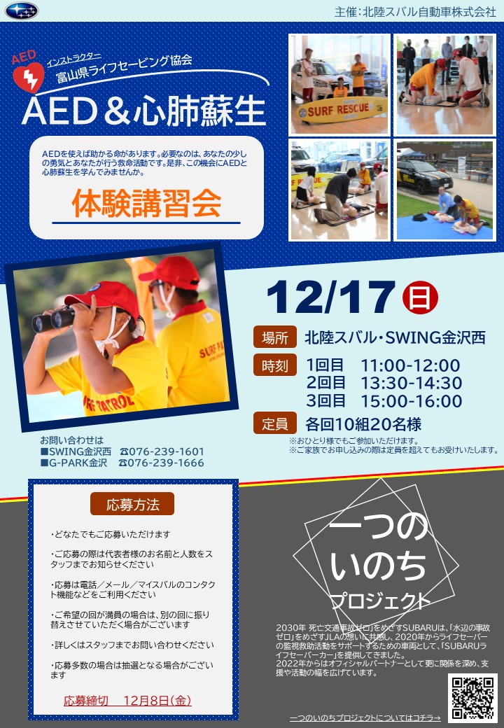 AED&心肺蘇生 体験講習会開催! SWING金沢西 特別イベント